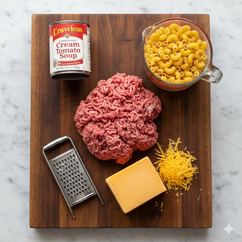 - Combine the Core: Return the drained beef to the pan. Stir in the condensed cream of tomato soup and the cooked macaroni, mixing thoroughly until everything is evenly coated in the sauce.