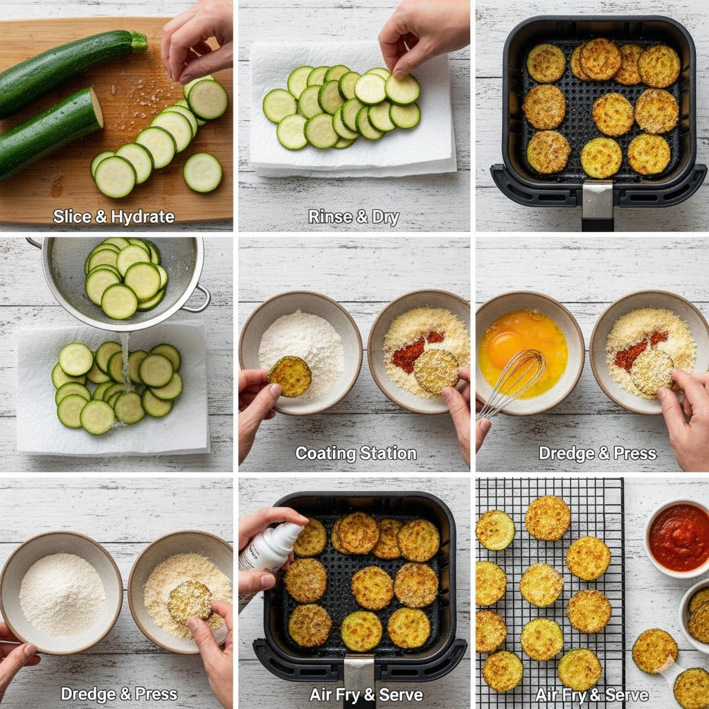 This simple process is all about creating the optimal environment for the zucchini to crisp up without burning. The sequence is critical for achieving a uniform, crunchy result.