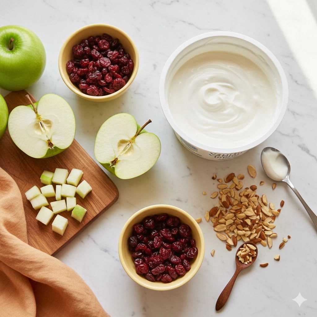 Apples are notorious for browning quickly once their flesh is exposed to oxygen. While the lactic acid in the yogurt helps slow this process down, you can provide extra protection by tossing the chopped apples in a tablespoon of fresh lemon juice before adding the other ingredients. The ascorbic acid in the lemon acts as a powerful antioxidant, keeping your apples bright and white for hours.