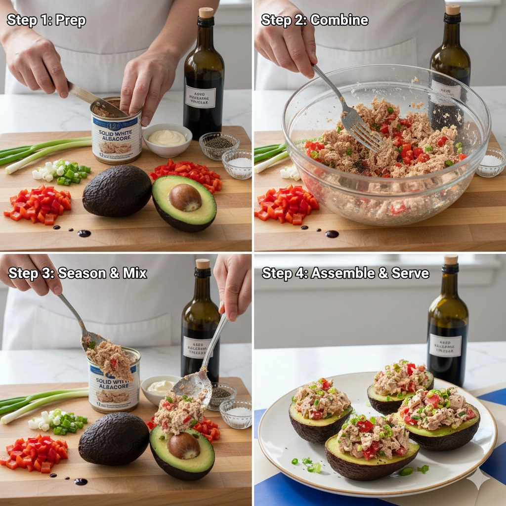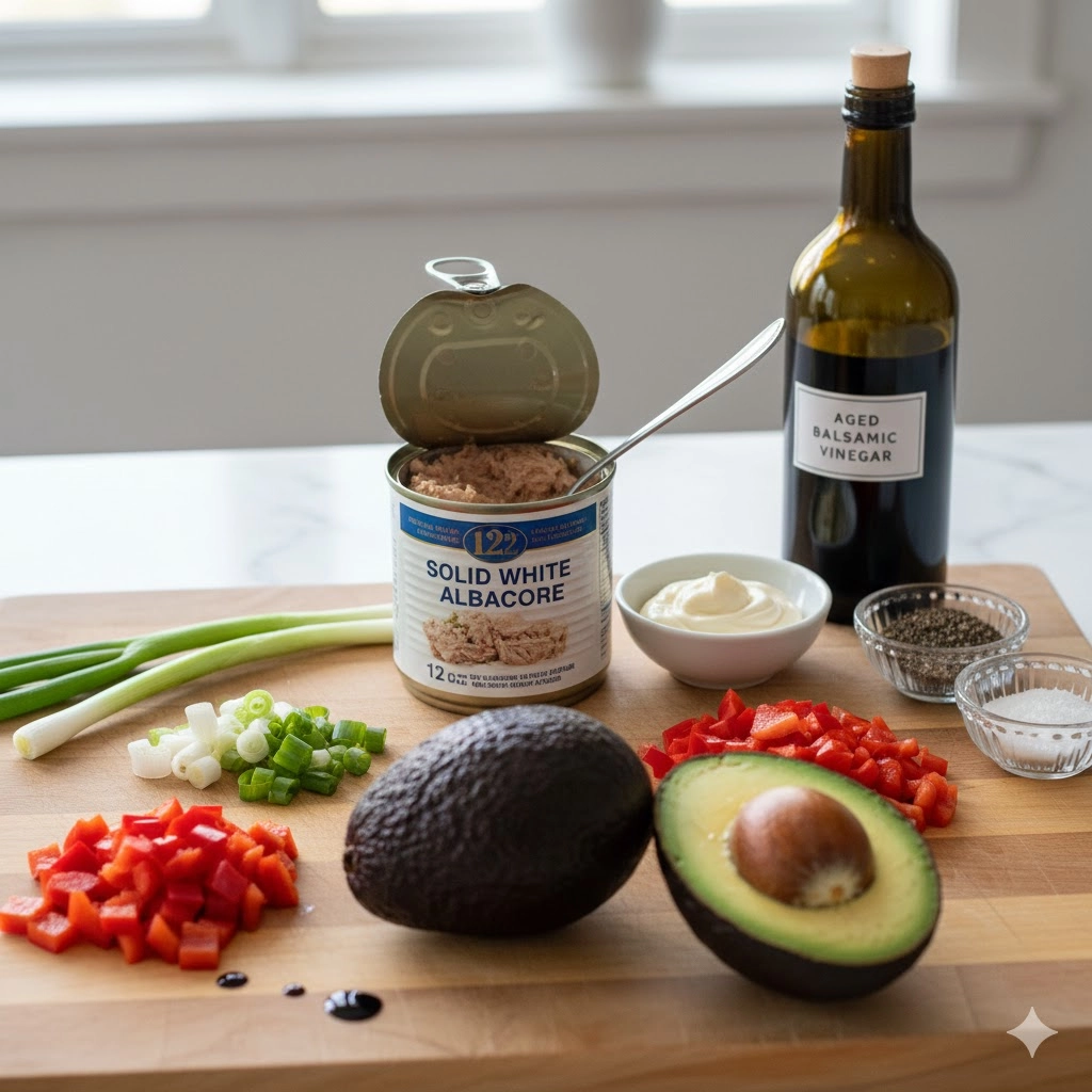 The addition of the balsamic vinegar is a subtle but vital culinary move. While many tuna salads rely on lemon juice, the balsamic vinegar adds a touch of sweetness and a complex woody note that complements the earthiness of the avocado. When you are mixing the filling, aim for a “chunky-light” consistency. You want the red bell peppers to remain distinct so that every bite offers a crisp snap against the velvety avocado flesh.