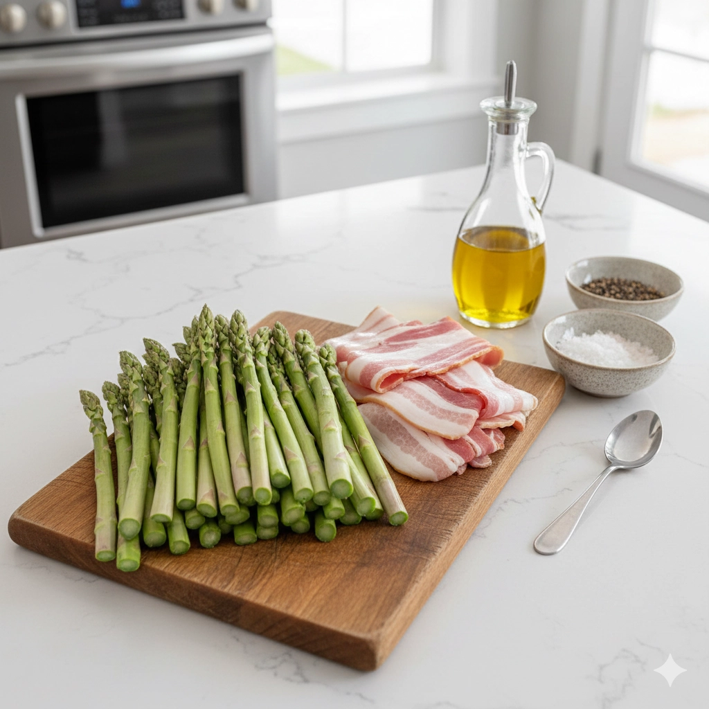 You should always opt for standard thin-cut or medium-cut bacon. While thick-cut bacon is delicious for breakfast, it is a poor choice for wrapping. The exterior of thick bacon will brown, but the interior part touching the asparagus will remain rubbery and fatty because the heat cannot penetrate through the thick layer fast enough before the asparagus overcooks. A thinner slice ensures the heat reaches the center of the wrap quickly.