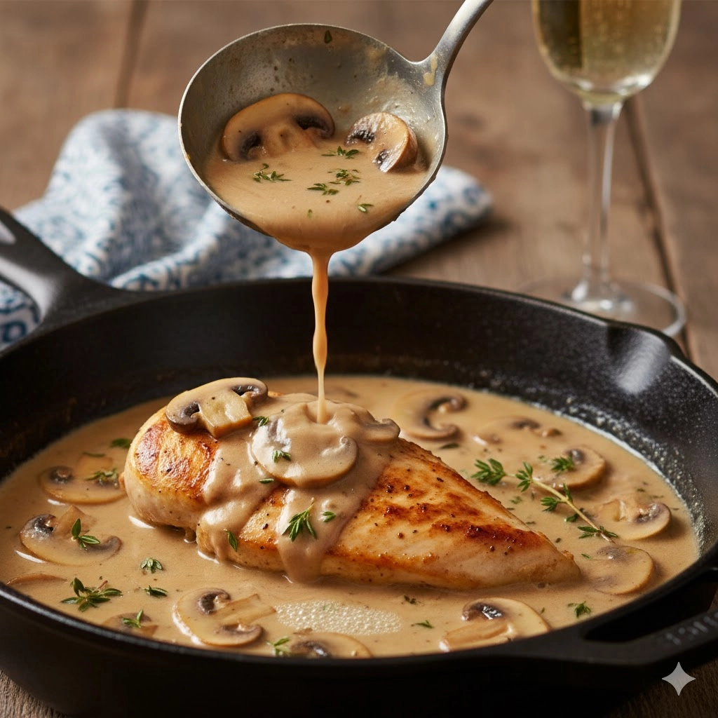 Absolutely. This mushroom cream sauce is incredibly versatile. It works beautifully over seared turkey cutlets, roasted salmon, or even served over a thick slice of roasted cauliflower for a vegetarian option. The balance of savory mushrooms and sweet sparkling juice is universally appealing.