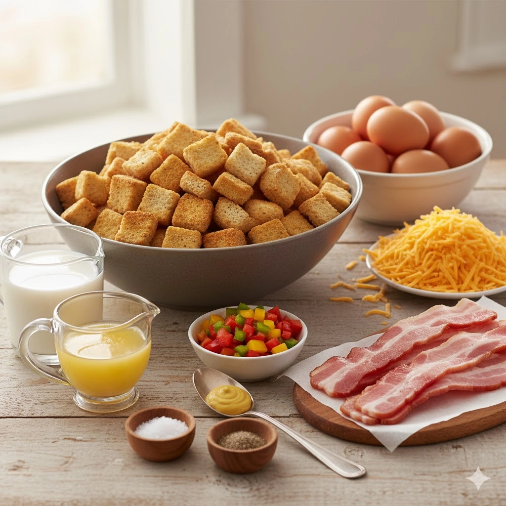 Creating a world-class Charleston Breakfast Casserole requires more than just following a list of steps; it requires an understanding of how the textures evolve during the cooking process. The foundation of this dish is the crouton layer. Unlike traditional bread pudding styles that use fresh bread, the use of dehydrated croutons provides a unique structural advantage. When the melted butter hits the croutons, it creates a moisture barrier that allows the bread to absorb the egg custard without becoming mushy or losing its identity.