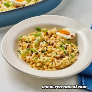 This casserole is best served in deep bowls to contain the creamy sauce. Because it is quite rich and spicy, it pairs exceptionally well with refreshing, acidic sides. A plate of chilled pickled radish (danmuji) or a simple cucumber salad with rice vinegar can provide a necessary palate cleanser between bites. If you are looking to round out the meal, a side of steamed broccoli or roasted bok choy offers a fresh crunch that balances the soft, chewy texture of the ramen.