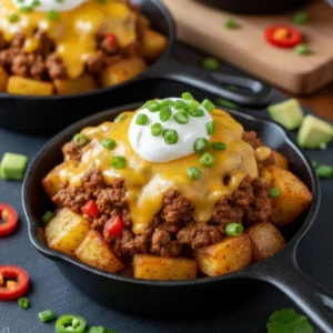 This dish is a testament to the fact that you don’t need fancy ingredients to create a memorable, high quality meal. By taking the humble potato and treating it with a bit of spice and high heat, you transform it into a gourmet base for a classic taco profile. It is a warm, inviting, and inherently social meal that encourages everyone to dig in and enjoy. Whether it is a chilly winter evening or a busy school night, these Cheesy Taco Potatoes provide the nourishment and comfort that only a home cooked meal can offer.