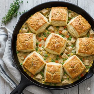 When the temperature drops and the days grow short, nothing satisfies quite like a meal that feels like a warm hug. This Chicken Pot Pie With Biscuits is a rustic, soulful upgrade to the classic double-crust pie. Instead of a traditional pastry lid, this version features a savory, vegetable-packed chicken stew topped with tall, buttery, homemade buttermilk biscuits. It’s a study in contrasts: the velvety, herb-flecked gravy against the shattering, golden crispness of a fresh biscuit. Designed to be a one-pan wonder, this recipe brings high-end comfort directly to your kitchen table without any of the fuss of rolling out delicate pie dough.