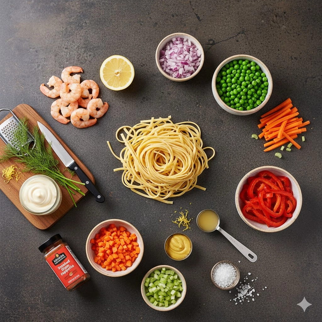 This vibrant cold shrimp and linguine pasta salad balances the oceanic sweetness of tender crustaceans with the citrusy brightness of a lemon-dill dressing. While many pasta salads lean heavily on oily vinaigrettes or thick, cloying mayonnaise, this version utilizes a blend of Dijon mustard and fresh zest to create a light yet creamy coating that clings to every strand of linguine. It serves as an excellent centerpiece for a summer luncheon or a refreshing dinner during the warmer months when a hot meal feels too heavy. By incorporating frozen staples like peas and pre-cleaned shrimp, the preparation remains streamlined without sacrificing the sophisticated flavor profile expected of a fresh seafood dish.