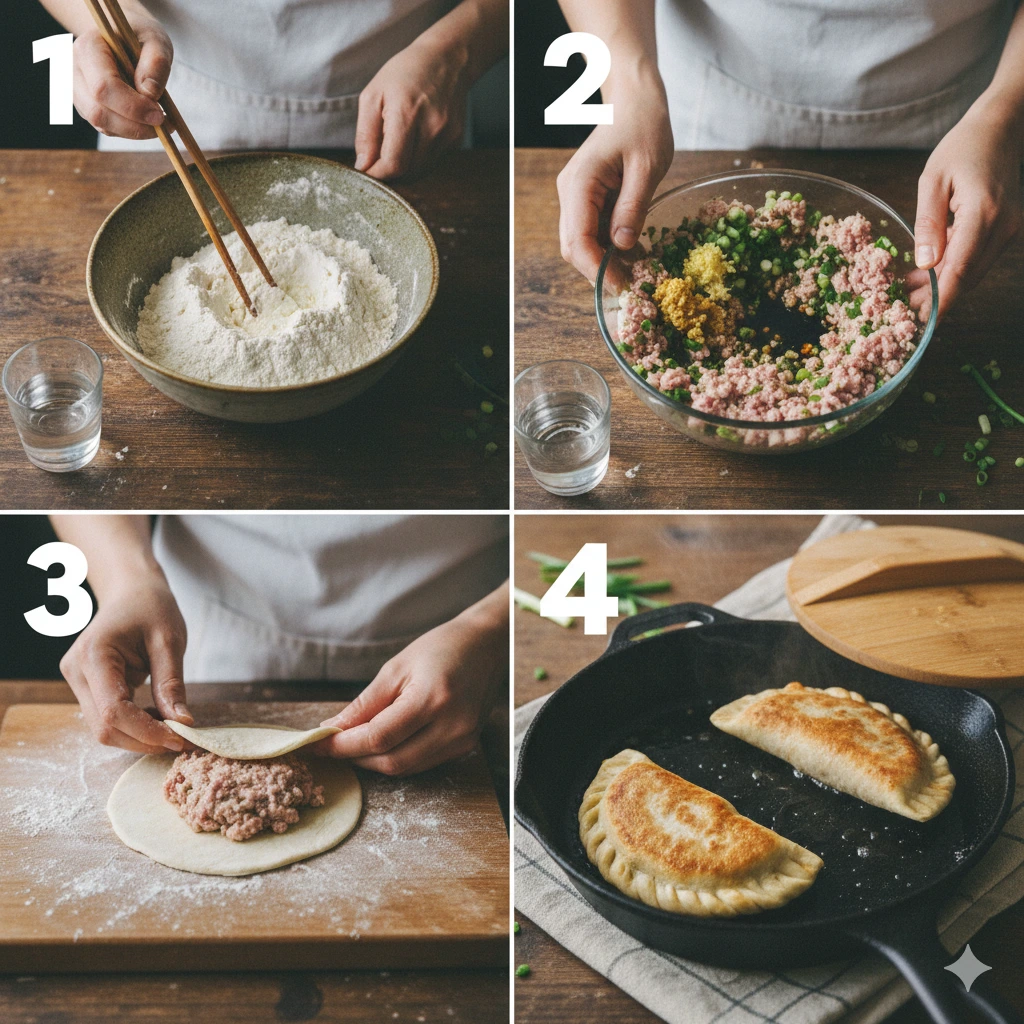 During the frying stage, the “steam-fry” method is your best friend. Frying alone might brown the crust before the raw meat inside reaches a safe internal temperature. By adding that splash of water and covering the pan, you create a high-temperature steam environment. This ensures the dough remains moist and the meat cooks thoroughly. The final minute of uncovered frying is what restores the “crunch,” giving you the best of both worlds: a steamed-dumpling interior and a fried-bread exterior.