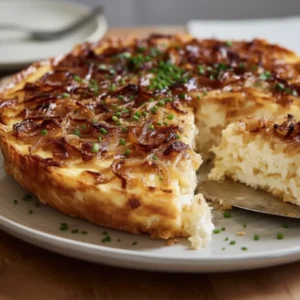 Whether you are navigating a busy work week or hosting a slow, sun-drenched Sunday brunch, finding a dish that balances sophisticated flavor with genuine nutritional density can feel like a culinary scavenger hunt. We often find ourselves choosing between the indulgent richness of a traditional quiche and the utilitarian nature of a high-protein meal prep staple. This Caramelized Onion and Gruyère Cottage Cheese Bake bridge that gap perfectly. It offers the deep, jammy sweetness of slow-cooked onions and the nutty, sophisticated melt of Alpine cheese, all built upon a foundation that provides substantial protein. This isn’t just a healthy substitute for a classic casserole; it is a gourmet experience that happens to align with your wellness goals. The texture is remarkably custard-like, slicing into clean, elegant wedges that look as beautiful on a porcelain plate as they do in a glass storage container for tomorrow’s lunch.