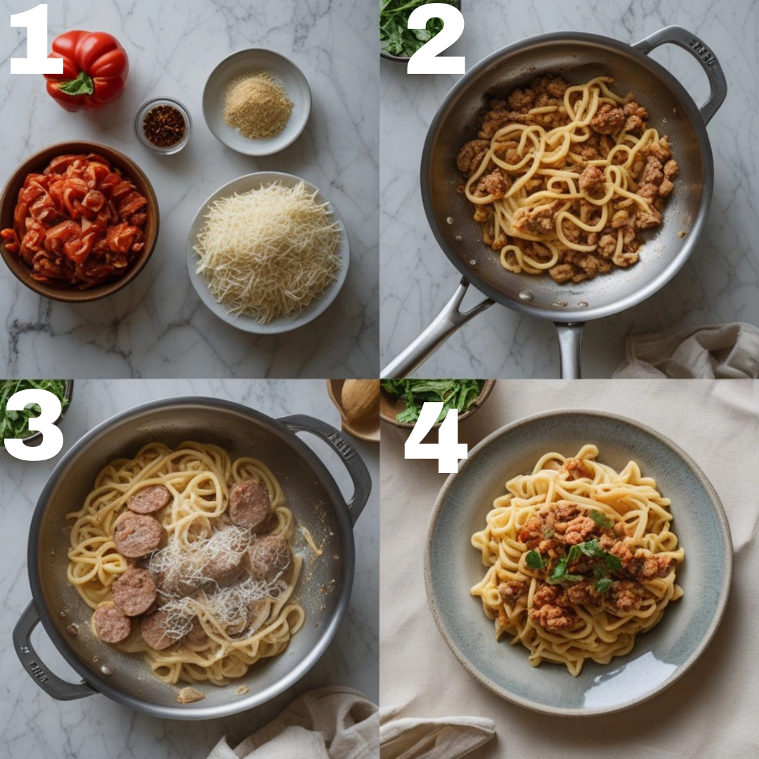 The searing phase is critical—develop a dark crust on sausage to build flavor through Malliard reactions. Monitor heat closely when toasting spices; burnt garlic becomes bitter in seconds. When simmering, maintain gentle bubbles—rapid boiling breaks cream emulsion. Final sauce thickness depends on starch release: stir just enough to prevent sticking without overworking pasta surfaces.