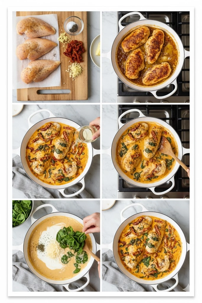 - Prepare the Chicken: Pat the chicken breasts completely dry. Season generously with salt and pepper.