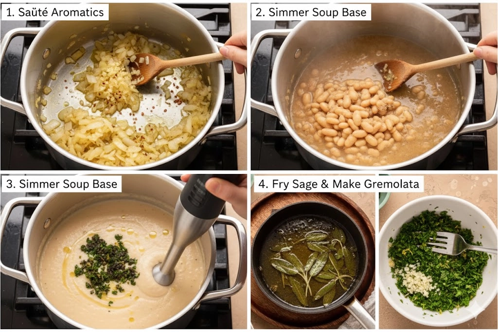 To elevate this dish from a standard bean soup to a signature meal, consider the quality of your olive oil. Since olive oil is used both for sautéing and as a finishing drizzle, using a high-quality extra virgin olive oil with peppery notes will significantly enhance the final flavor profile. The oil used to fry the sage becomes an “infused oil,” picking up the volatile compounds of the herb. Using this as a garnish ensures that the earthy scent of sage hits the diner’s nose before they even take the first bite.