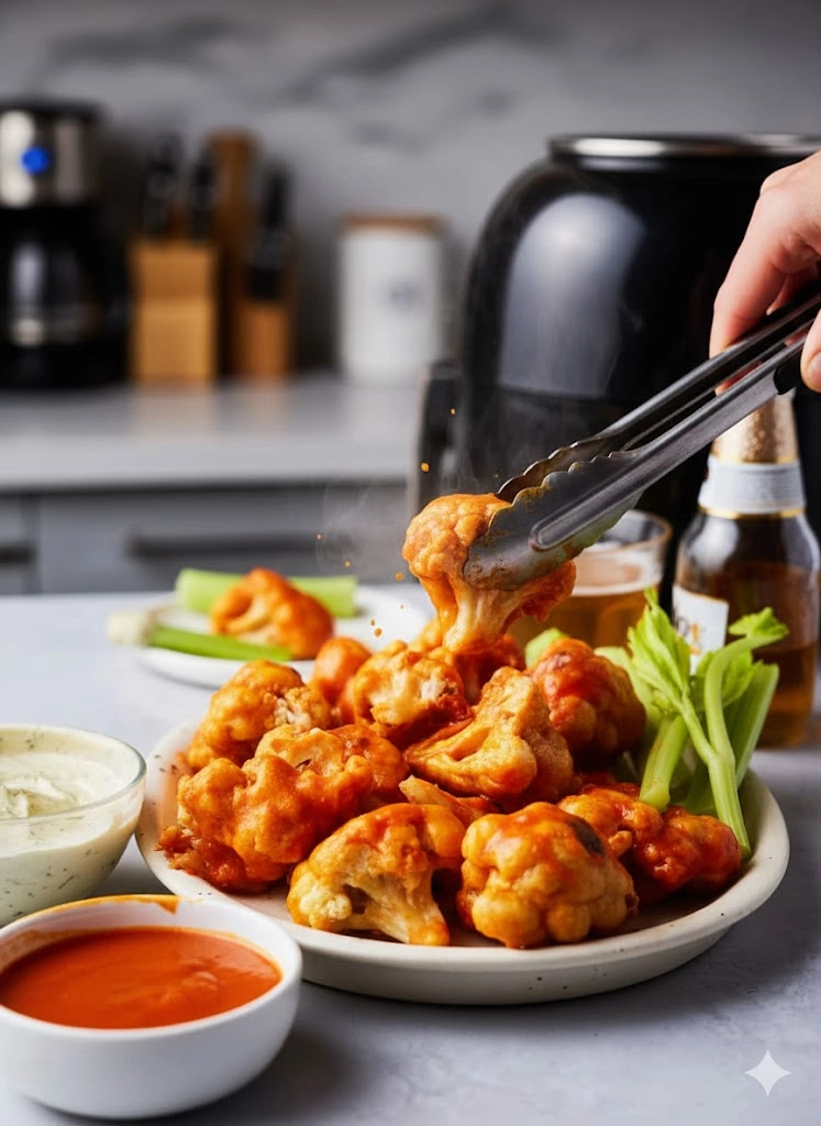 - Serve Immediately: Transfer the Crispy Air Fryer Buffalo Cauliflower to a serving platter and present with your preferred dipping sauces.