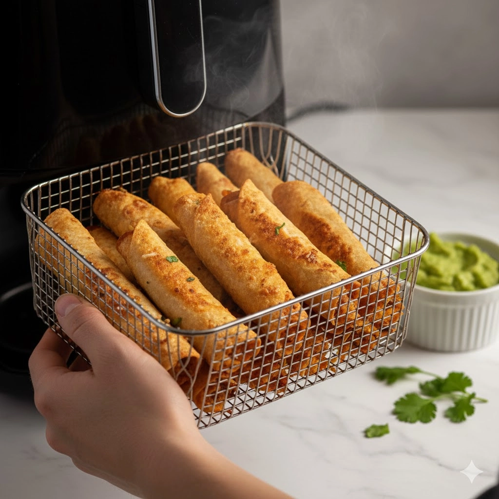 The cooking duration can vary based on the specific model of your air fryer. Generally, five to ten minutes is the window. You are looking for a visible color change—the ends should look toasted, and the body of the Air Fryer Chicken Taquitos should feel firm to the touch when tapped with a pair of tongs. If they look pale, give them another two minutes. The cooking spray acts as a conductor for the heat, so do not skip that light misting, or the tortillas may end up feeling more like dried toast than fried shells.