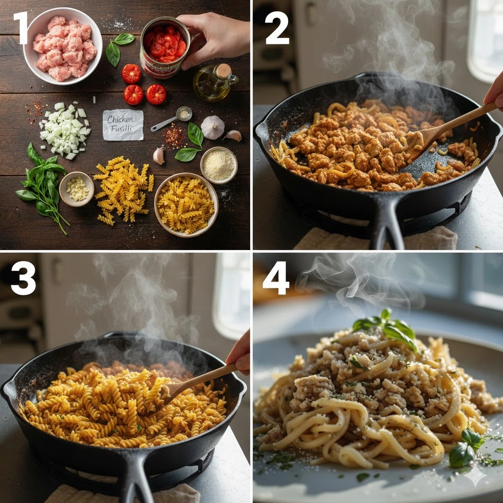 The moment ground chicken hits a hot skillet, a magical alchemy begins. The sizzle releases an intoxicating aroma—an earthy whisper of protein mingling with grassy olive oil notes. As garlic and onions join the dance, sharp pungency softens into sweet caramelization, painting your kitchen with the soul-warming fragrance of Mediterranean kitchens. This recipe isn’t just pasta; it’s a canvas. Creamy tomato sauce clings to tender fusilli, while fresh basil adds bright top notes against the rich umami of Parmesan. Unlike heavy beef dishes, chicken offers a lighter elegance. Within 30 minutes, you’ll create restaurant-worthy depth: the acidic punch of San Marzano tomatoes balancing the savory foundation, red pepper flakes offering subtle heat that lingers like a whispered secret. Hear the pasta water bubble, watch cheese melt into ribbons, feel the wooden spoon glide through velvety sauce. This is weeknight cooking transformed—a dish equally at home in a Tuscan villa or a New York loft, proving gourmet needs no ceremony. Just hunger, a skillet, and the simple joy of food that hugs the soul.