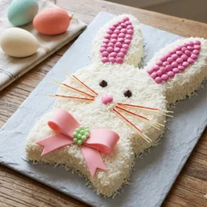 This Easter Bunny Cake is more than just a dessert; it is a centerpiece of holiday memories. By taking simple ingredients and using a bit of kitchen “math” to reshape them, you create a treat that delights both the eyes and the palate. The combination of moist cake, creamy frosting, and the textural crunch of coconut makes for a timeless flavor profile that appeals to all ages. As you gather around the table this Easter, this handmade rabbit will surely be the highlight of the celebration, proving that the best traditions are often the ones we bake ourselves.
