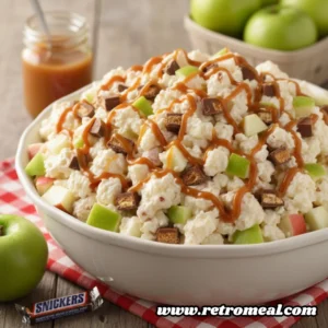 As the crisp autumn air begins to settle in and the leaves start their vibrant transformation, our cravings naturally shift toward the comforting flavors of the harvest. There is perhaps no dish that captures the whimsical spirit of fall better than this Easy Caramel Apple Salad. While it technically carries the title of a salad, anyone who has tasted its creamy, nougat-filled goodness knows it is truly a decadent dessert in disguise. This recipe is a nostalgic staple at potlucks, block parties, and family gatherings across the South, offering a delightful crunch of fresh apples paired with the iconic chew of Snickers bars. It is the kind of dish that makes children wide-eyed with excitement and adults reach for a second helping, proving that sometimes the best way to enjoy fruit is when it is folded into a cloud of vanilla cream and drizzled with rich, buttery caramel.