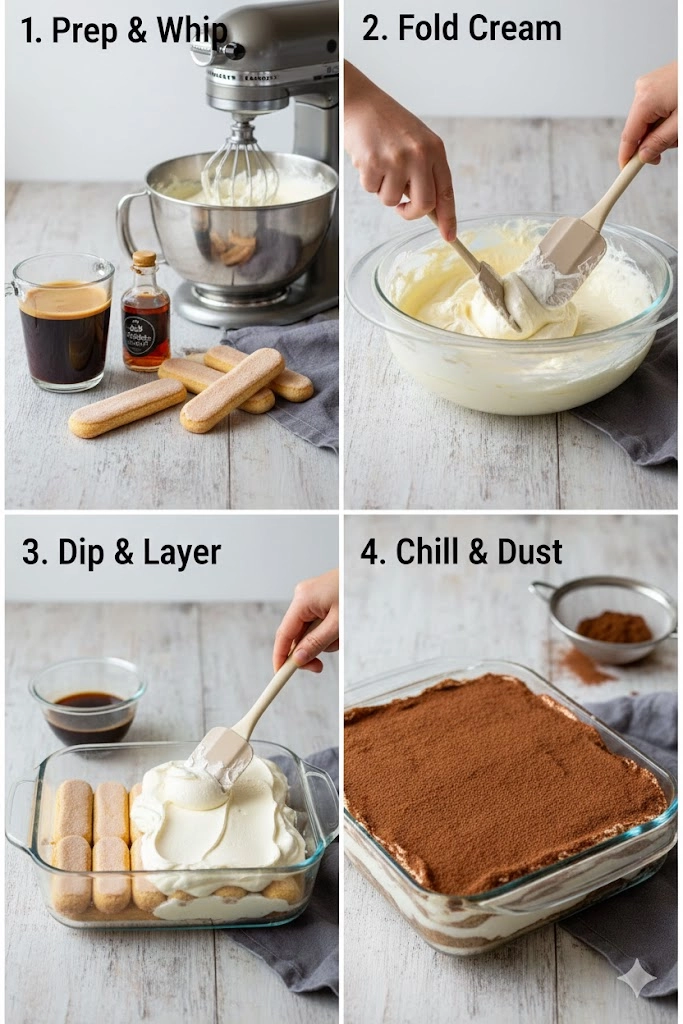 This recipe focuses on four high-level actions: preparation, cream aeration, dipping, and layering. Follow these steps for flawless execution.