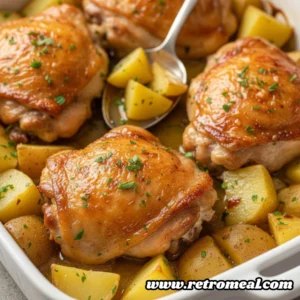 - Final Garnish and Service: Remove from the oven and let the dish rest for a few minutes. Spoon the remaining pan juices over the chicken and potatoes. Garnish with fresh parsley if desired and serve warm.
