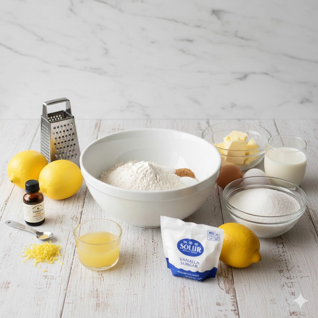 - One quarter cup fresh Lemon Juice (plus two tablespoons extra for the post-bake soak)
