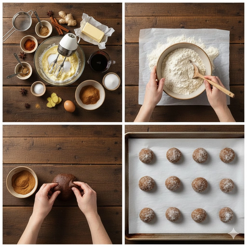 When beating your butter and sugar, aim for a texture that resembles wet sand that has become fluffy. Adding the molasses and egg will transform the mixture into a glossy, mahogany-colored cream. The smell at this stage is incredible—the sulfurous depth of the molasses cutting through the richness of the butter. Avoid over-beating once the egg is in, as too much air can cause the cookies to puff and then deflate too rapidly.