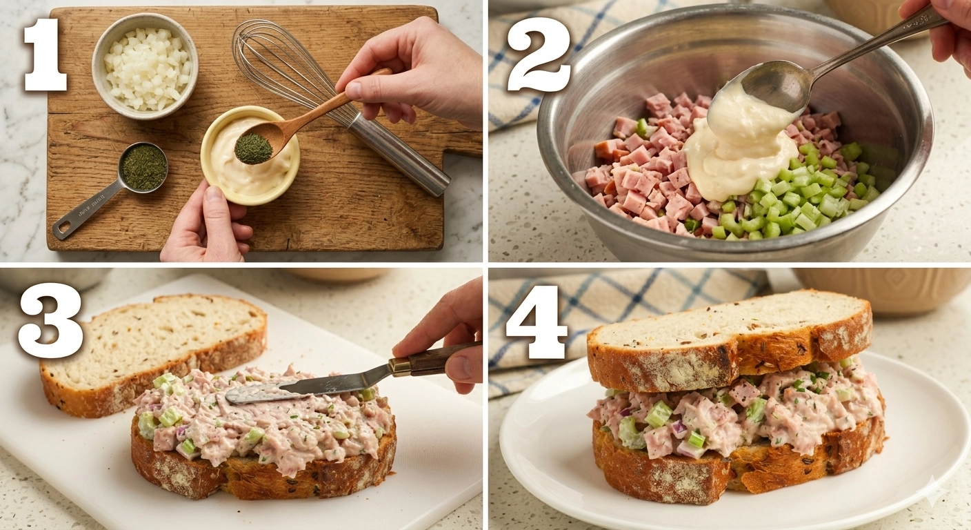 Follow these steps carefully to ensure your ham salad has the ideal consistency without becoming a puree.