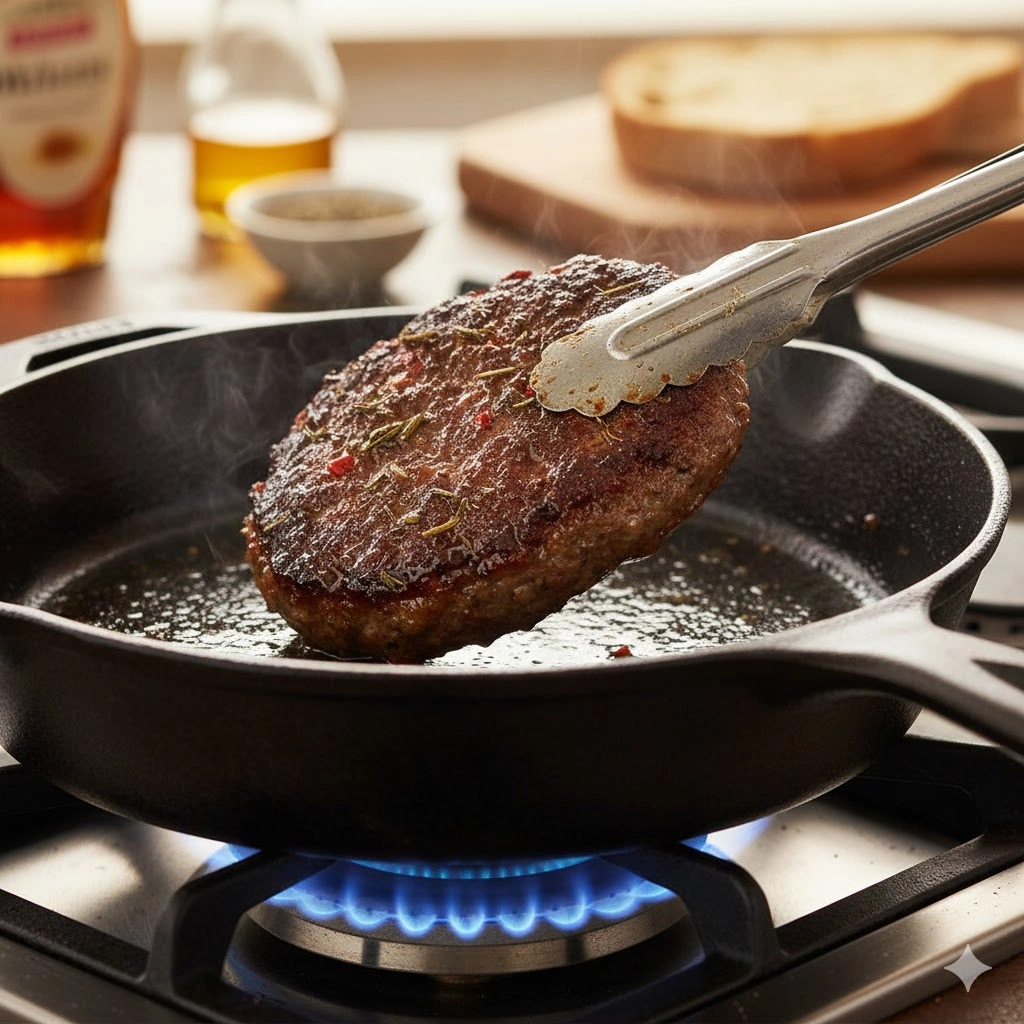 - First Side Doneness: After four to five minutes, the edges of the patty touching the skillet will show a rich, deep caramelization—a sign of the Maillard reaction. This is the flavor development you are looking for. The uncooked portion of the side facing up should appear opaque and pale, and the patty should release easily from the pan. If it sticks, give it thirty more seconds before attempting to flip.