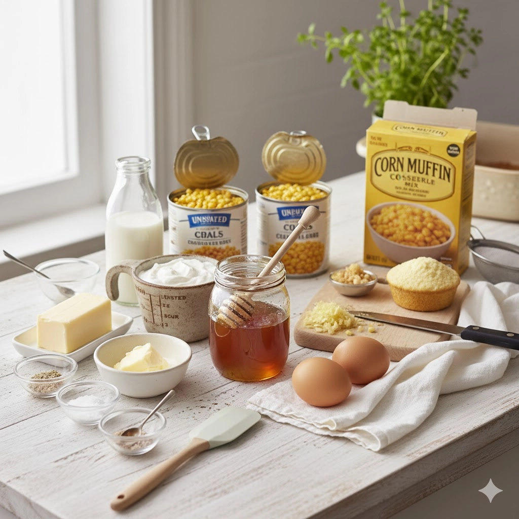 This casserole shines when served alongside meats that have been treated with salt or smoke. The natural sugars in the corn and the floral notes of the honey provide a necessary counterpoint to the intensity of a dry-rubbed pork shoulder or a salt-crusted prime rib.
