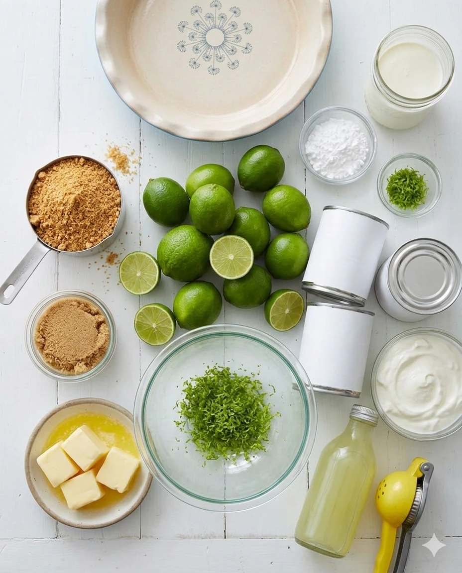 To ensure your dessert has the authentic depth of flavor and the ideal “snap” in the crust, gather these specific items. Please note that using fresh limes rather than bottled juice is the secret to the vibrant, floral notes that define this dish.