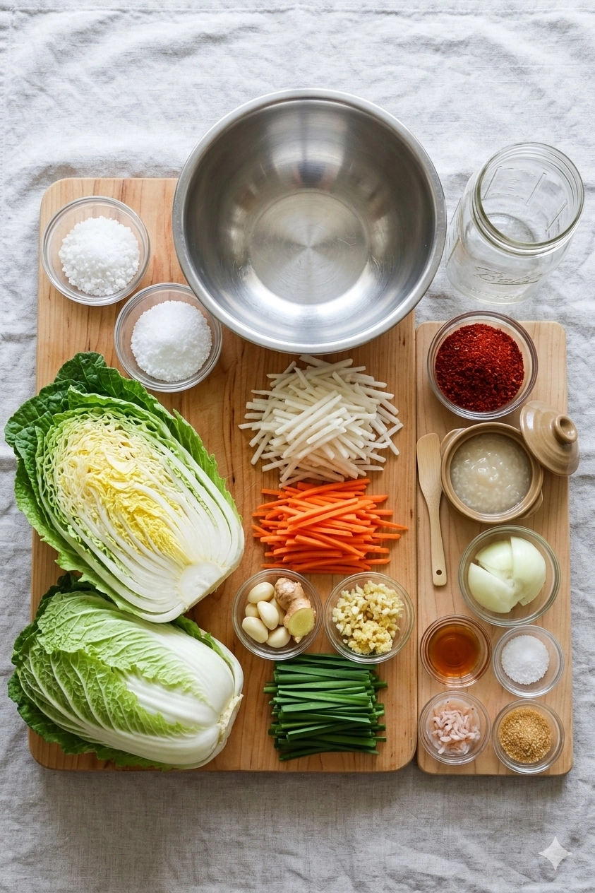 To achieve the deep, pungent profile of true Korean kimchi, you must gather specific ingredients that facilitate the fermentation process.