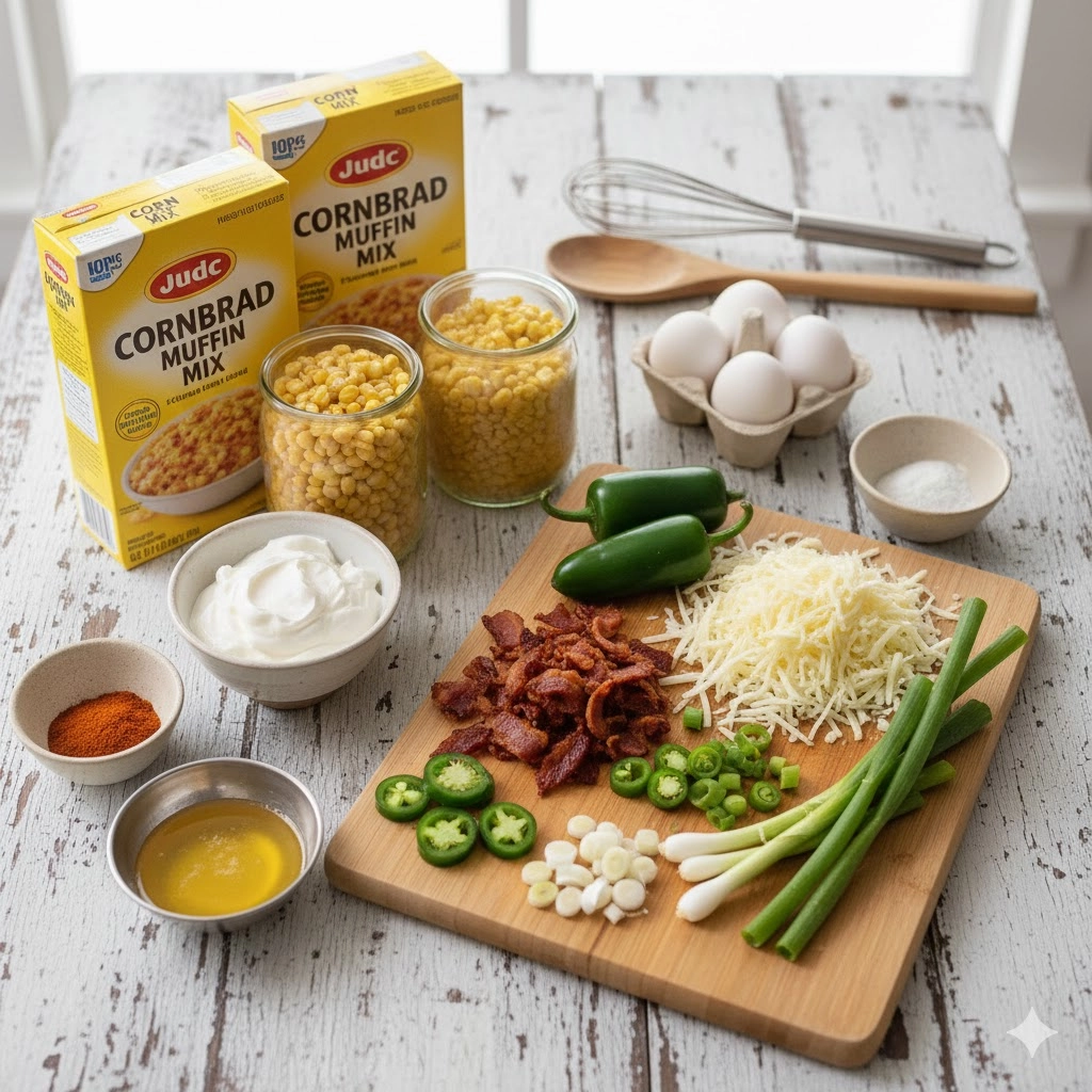 - Bacon Preparation: Cook the bacon until it is just shy of being burnt. The moisture in the corn batter will naturally soften the bacon during the baking process, so starting with a very crisp product ensures it still has a “bite” in the final dish.