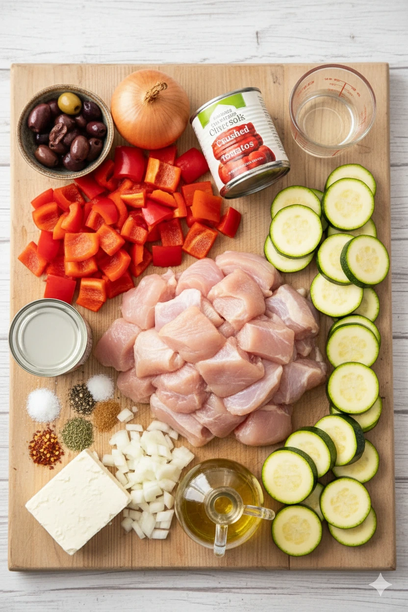 The success of this Mediterranean Chicken Casserole relies on high-quality, fresh ingredients that provide a balance of acidity, salt, and earthiness.