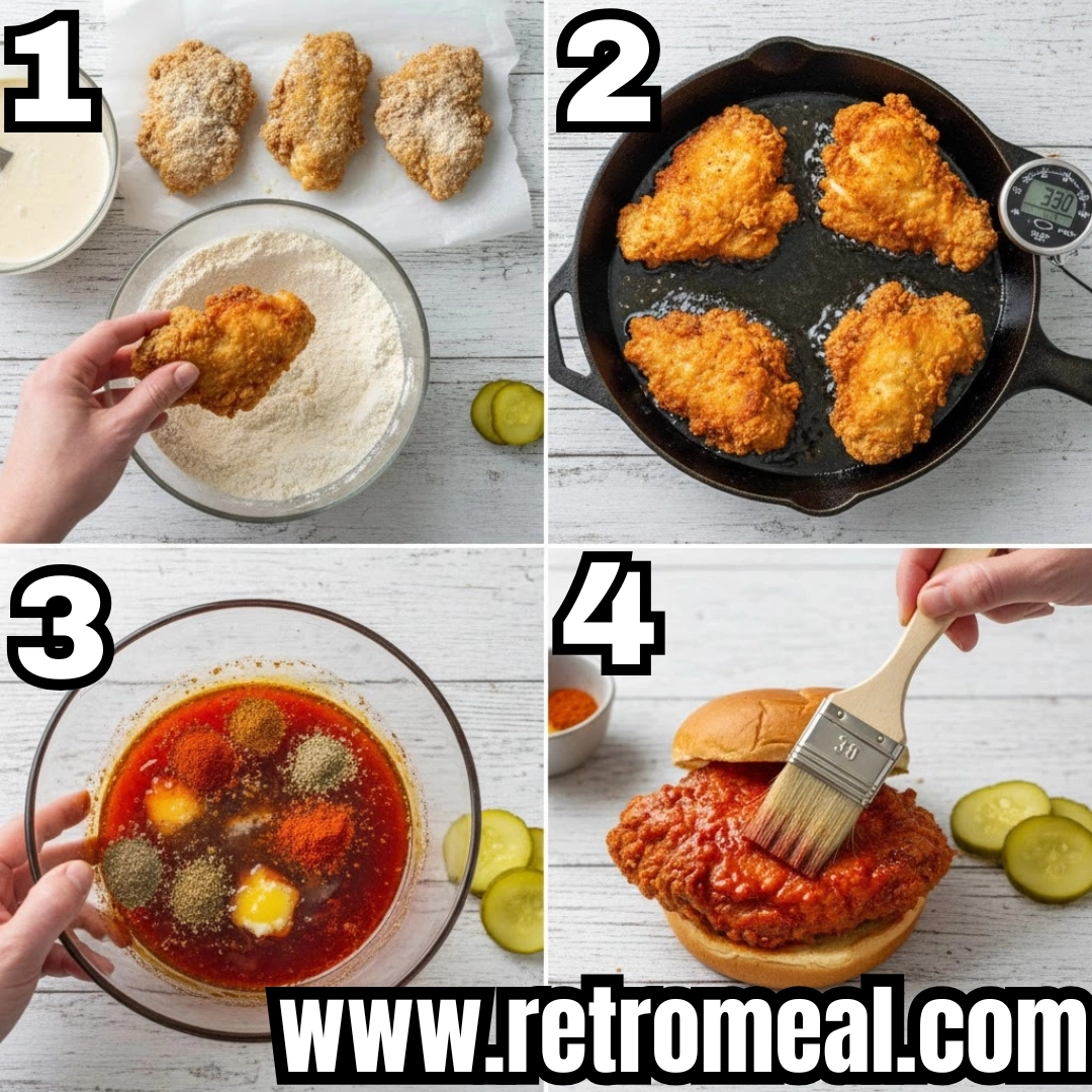 To truly appreciate this recipe, one must understand its legendary roots at Prince’s Hot Chicken Shack. The story of Thornton Prince and the “revenge chicken” served by his girlfriend has become a staple of American food folklore. What started as a punishment for a late night out turned into a culinary phenomenon that defined a city’s food identity. This history is why the traditional presentation remains so humble. While we are using burger buns for convenience and modern taste, the soul of the dish is found in the simplicity of white bread and pickles. The bread is there to soak up the spicy oil that drips off the chicken, becoming a prized treat at the end of the meal, while the pickles provide a vinegary acidity that cuts through the richness of the fried coating and the intensity of the spice.