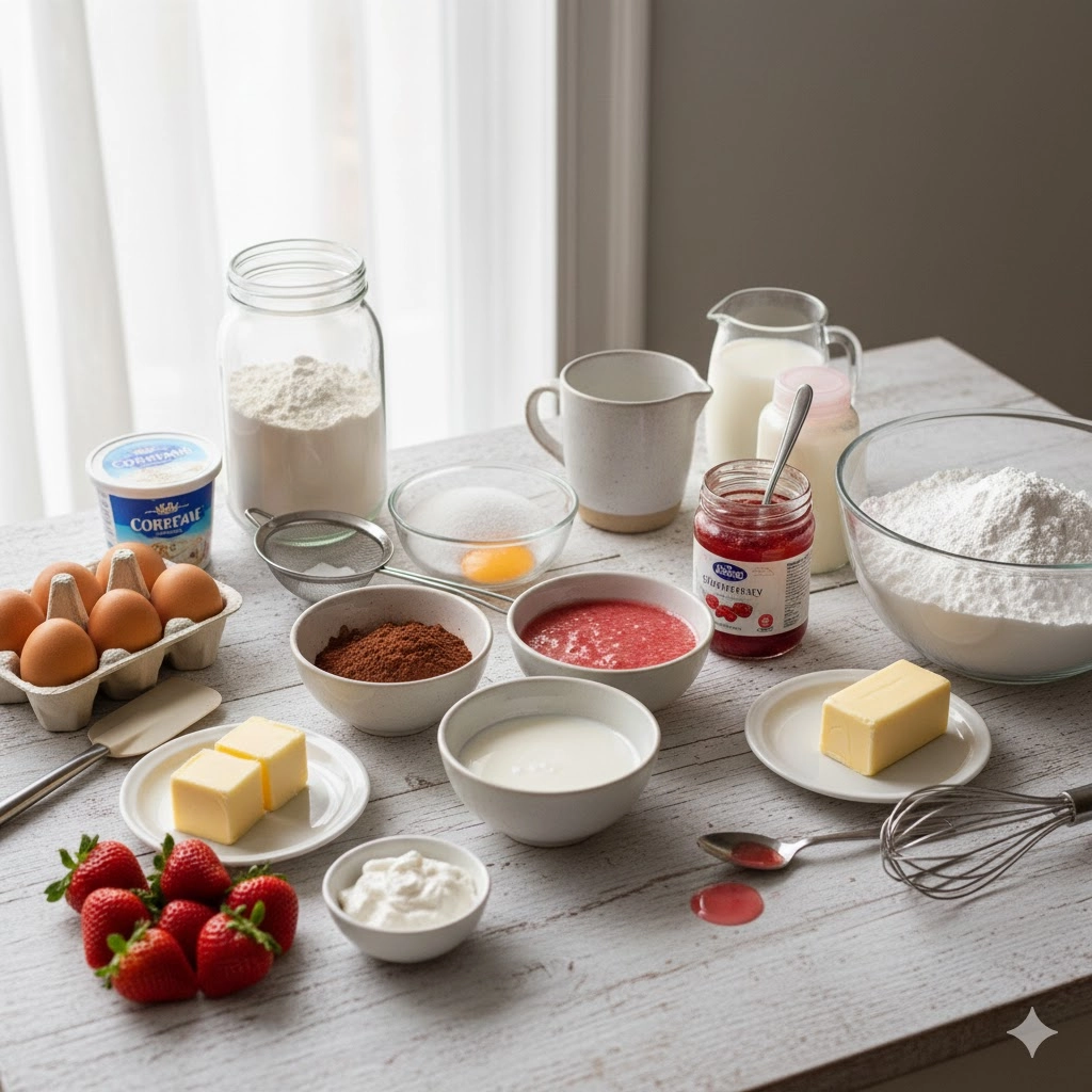 The journey of a Neapolitan cake begins with the reduction. You aren’t just making a sauce; you are creating a flavor concentrate. By simmering the strawberries with lemon juice, you are using acidity to brighten the natural sugars of the fruit. This ensures that the strawberry flavor isn’t lost when it competes with the bold cocoa and the aromatic vanilla.