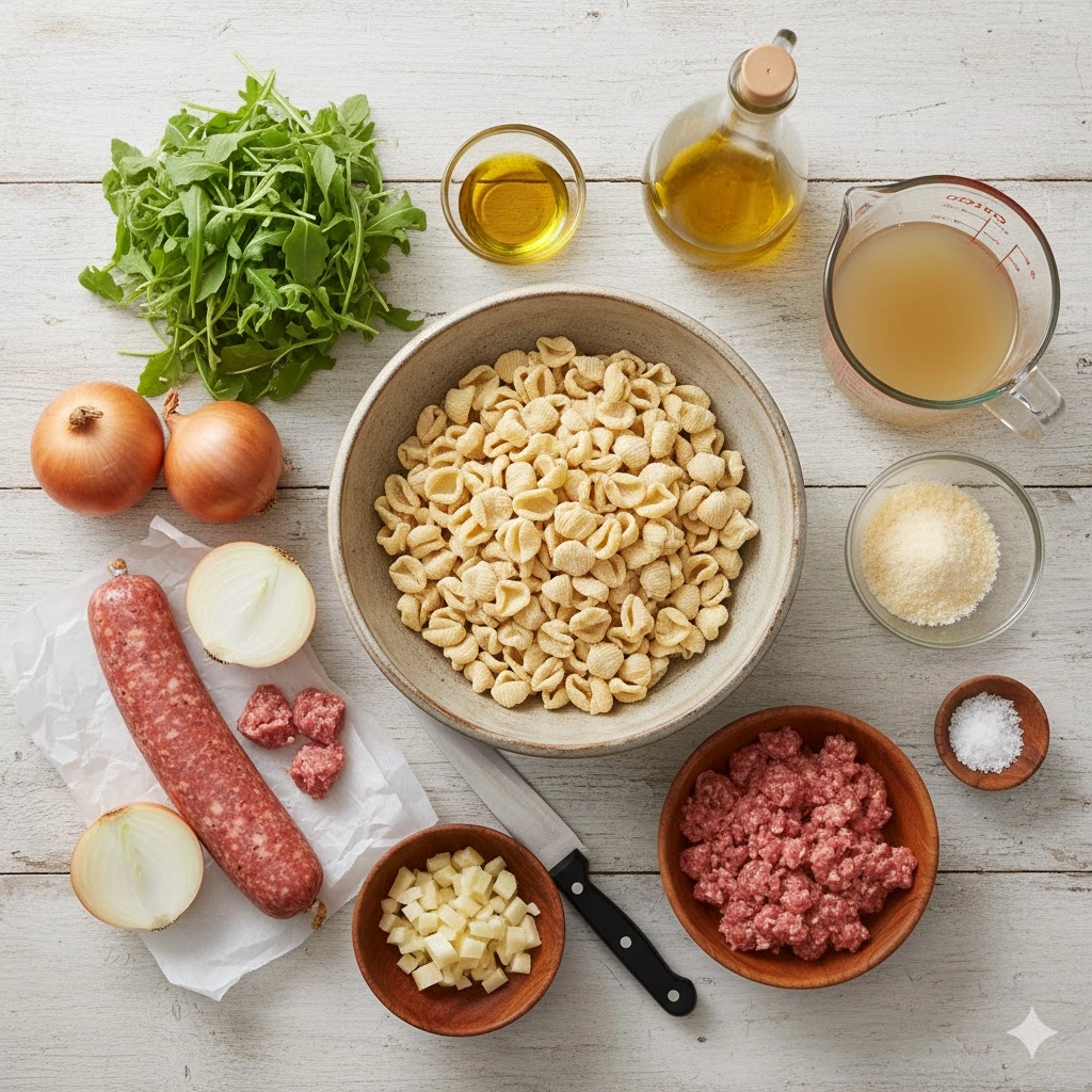 While orecchiette is the traditional choice because its “little ear” shape is perfect for cradling bits of sausage and sauce, you can certainly substitute it. Small shells or even campanelle are excellent alternatives because they have similar nooks and crannies. However, you should avoid thinner pastas like spaghetti or very large shapes like rigatoni, as they may not cook at the same rate or absorb the broth in the same manner as the thicker, denser orecchiette.