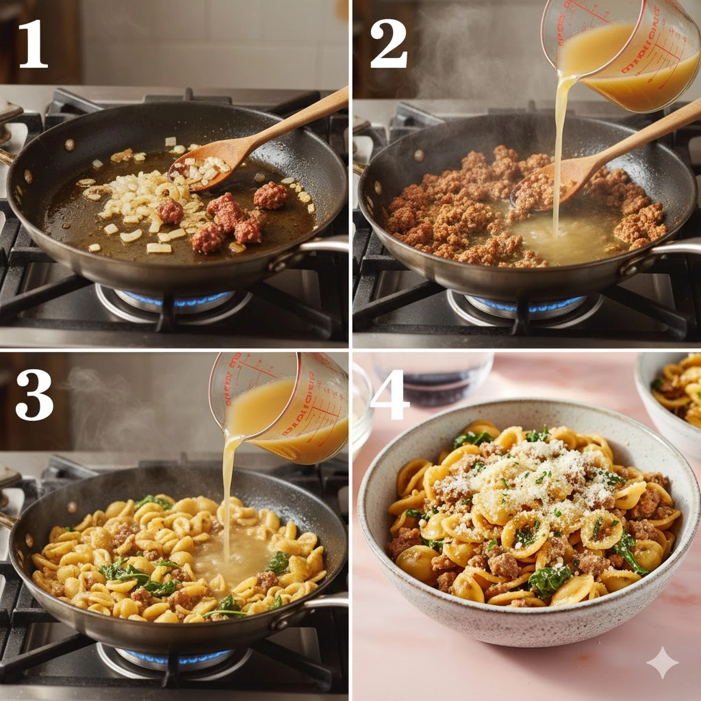 In the world of weeknight cooking, few things are as universally cherished as a meal that delivers maximum flavor with minimal cleanup. This One Pan Orecchiette Pasta is the personification of that philosophy. Combining the savory punch of spicy Italian sausage with the delicate “little ears” of orecchiette, this dish creates its own luscious sauce as it cooks. By simmering the pasta directly in chicken broth rather than boiling it in water, every single noodle becomes infused with a depth of flavor that traditional boiling simply cannot match. Whether you are a busy student looking for a budget-friendly meal or a seasoned home cook seeking a sophisticated yet simple dinner, this recipe is a masterclass in efficiency and taste.