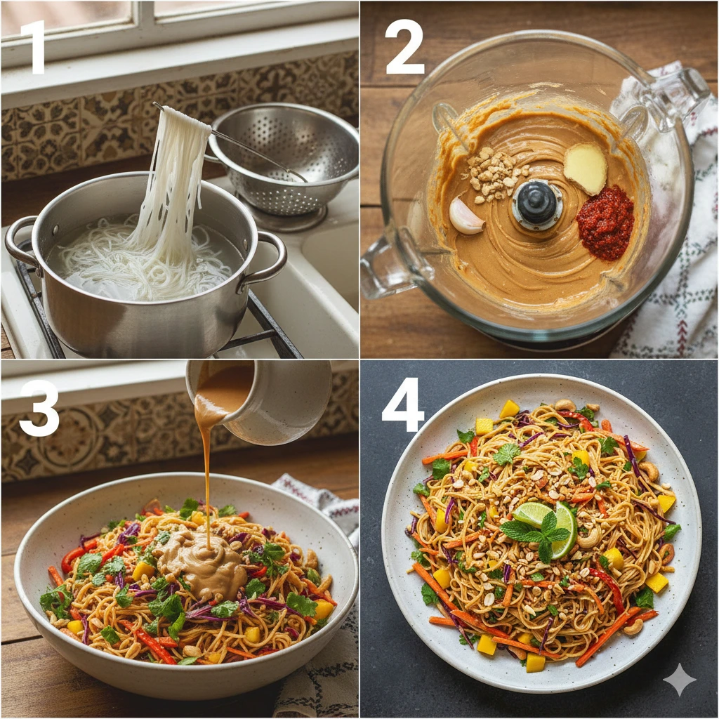 The beauty of this Thai Noodle Salad lies in its simplicity, but there is a true science to getting the textures exactly right. When you are working with rice noodles, timing is everything. Unlike wheat-based pasta, rice noodles can go from perfectly al dente to mushy in a matter of seconds. By rinsing them under cold water immediately after draining, you lock in that chewy texture that defines great Asian fusion cuisine. This step also prevents the noodles from sticking together in a giant clump, ensuring that the peanut sauce can coat each individual strand.