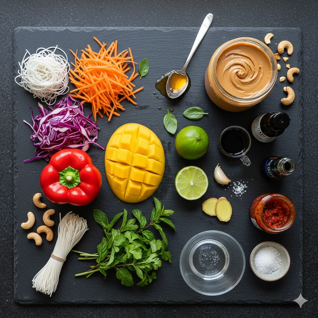 To achieve the best results with this recipe, gathering high-quality, fresh ingredients is paramount. The textures in this salad rely on the contrast between the soft noodles and the crispness of the raw vegetables.