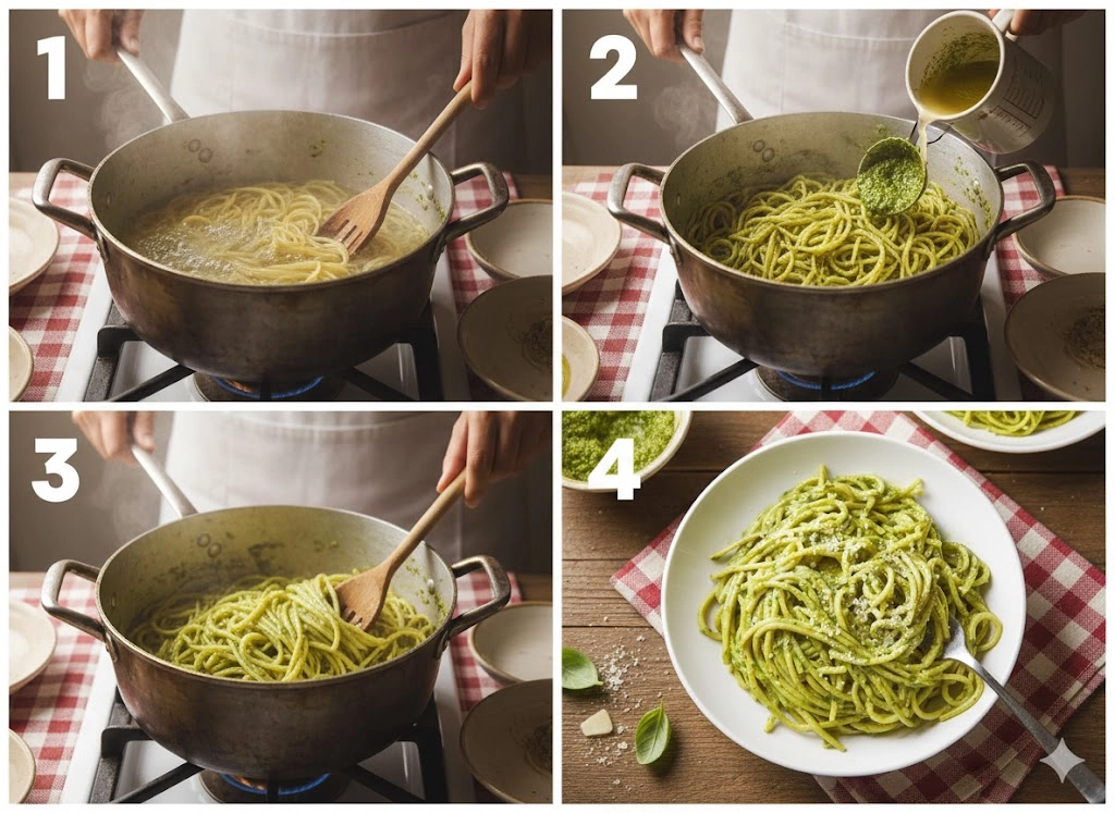 As you stir the pasta over medium-low heat, these starches act as a bridge between the olive oil in the pesto and the water. Without this step, the oil might simply slide off the noodles and pool at the bottom of your bowl. By simmering them together, you create a cohesive sauce that clings to every ridge and crevice of the pasta. This 3 to 5 minute window is where the magic happens; you will see the sauce transform from a watery green liquid into a thick, velvet-like coating that shines under the kitchen lights.