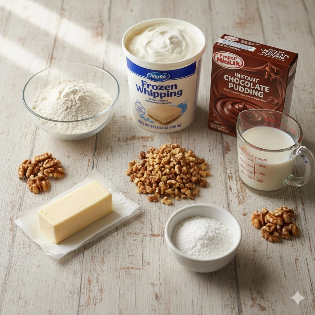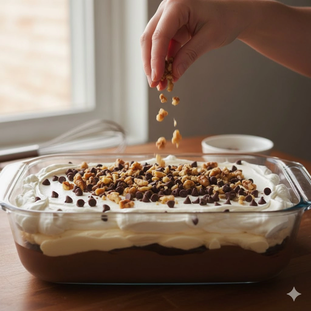 - Pistachio Variation: Replace the chocolate pudding with instant pistachio pudding and swap the walnuts for chopped salt-free pistachios for a vibrant green, nutty alternative.