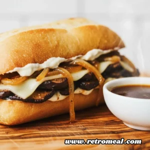 Plant-forward eating often focuses on what is missing, but this Portobello French Dip with Horseradish Aioli shifts the narrative toward abundance and texture. By utilizing the naturally dense, meaty quality of portobello caps, this sandwich provides a satisfying weight that rivals any traditional beef-based counterpart. The combination of slow-browned onions, a sharp garlic-infused spread, and a deeply savory dipping broth transforms simple pantry staples into a sophisticated meal. This recipe honors the classic American bistro tradition while proving that mushrooms can easily command the center of the plate when treated with the right roasting techniques and seasonings.
