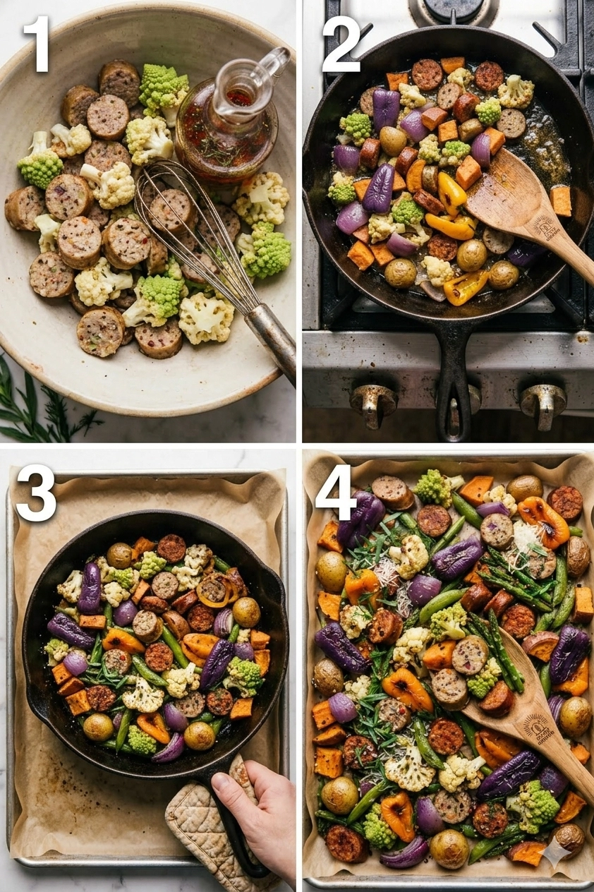 - The Toss: Using clean hands, toss all the ingredients together thoroughly. Ensure every piece of vegetable and every slice of sausage is well-coated in the oil and spice blend.