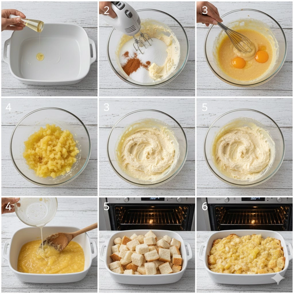 - The Soaking Period: For the most uniform texture, let the bread and pineapple mixture sit in the bowl for ten minutes before transferring it to the baking dish. This allows the juice to penetrate to the center of each bread cube.