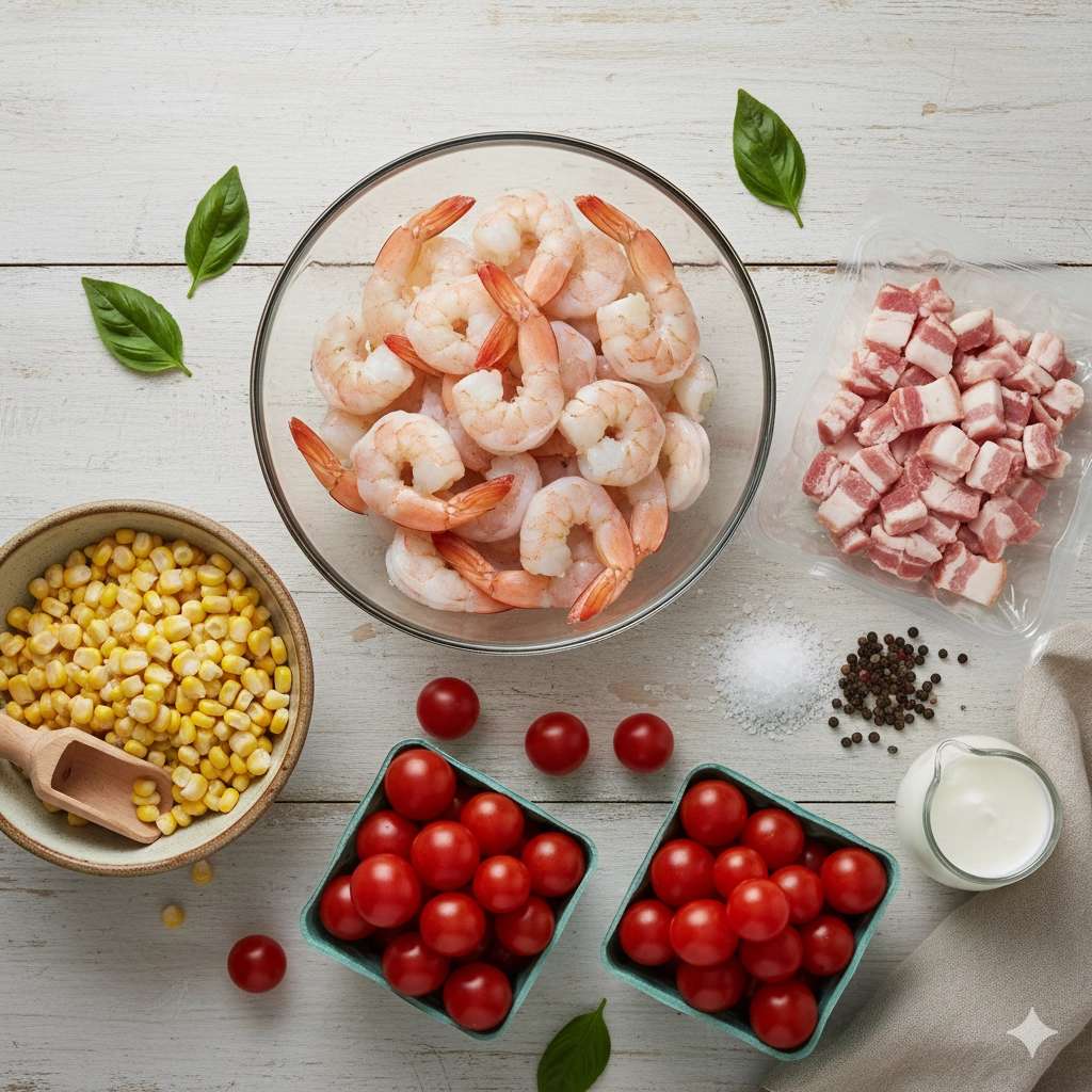 While the recipe specifies pancetta for its clean, salty profile, bacon is a common substitution. However, bacon will introduce a smoky element that can sometimes overshadow the delicate sweetness of the shrimp and corn. If you use bacon, consider a thick-cut variety so you still get those substantial, crunchy bits that provide a textural contrast to the soft cream sauce.