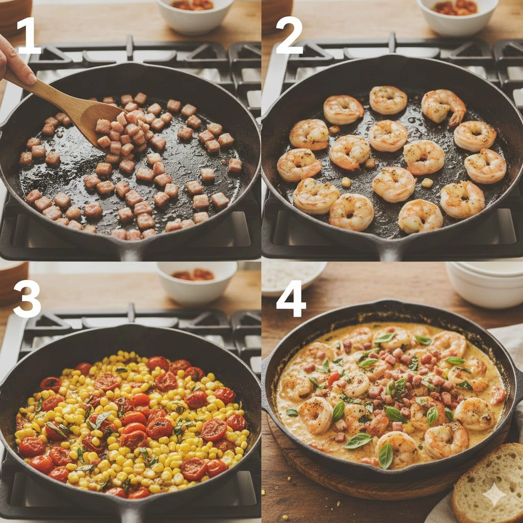 To achieve a 2000 word level of culinary excellence, one must understand the “why” behind the “how.” The foundation of this Creamy Skillet Shrimp with Corn and Pancetta is the rendering of the pancetta. Pancetta is Italian cured pork belly, and unlike bacon, it is typically not smoked. This means it provides a pure, salty, porcine fat that acts as the primary seasoning for the entire dish. As the fat renders out over 7 minutes, it undergoes the Maillard reaction, developing complex savory notes. When you remove the meat but keep the fat, you are essentially creating a seasoned cooking medium that carries the essence of the pork into the seafood and vegetables.