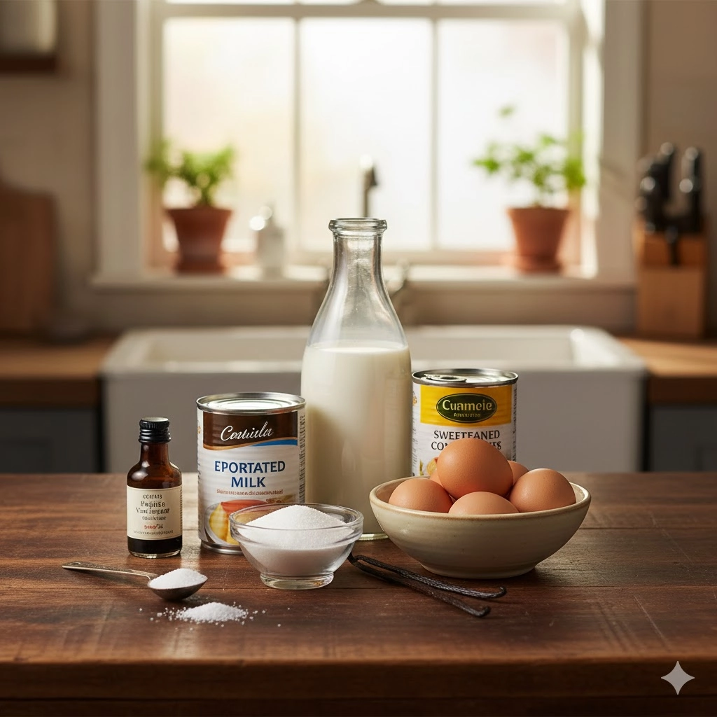 | Granulated Sugar | For the caramel and sweetness in the custard. | Standard fine grain sugar works best for smooth caramel. |