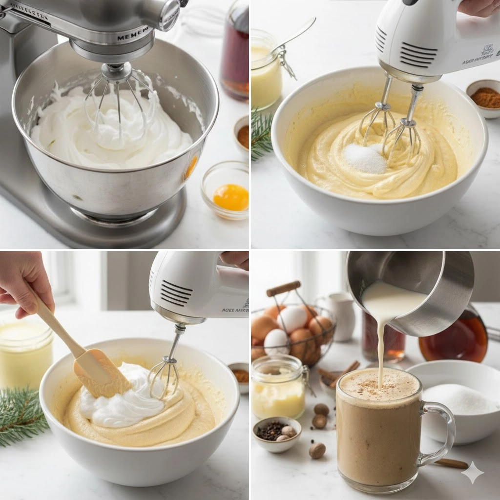 The entire process begins with the diligent preparation of the eggs. The distinct textures of the whipped whites and the creamed yolks are what create the characteristic fluffiness of the finished drink.