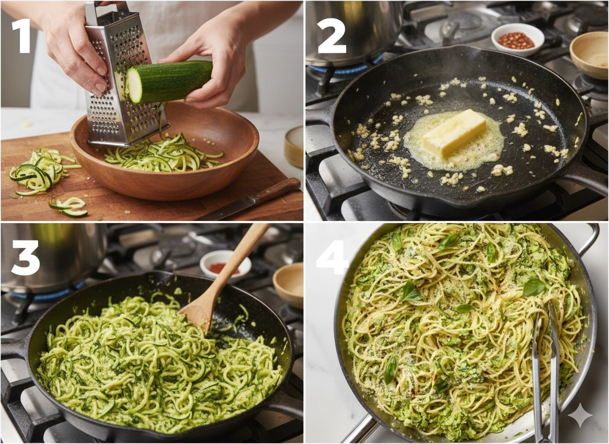 The final assembly happens fast. Ensure your pasta is slightly underdone because it will finish cooking in the zucchini mixture. This allows the noodles to actually absorb some of the zucchini-flavored butter rather than just having the sauce sit on top. When you add the cheese at the very end, do it off the heat. If the pan is too hot, the cheese can clump or become stringy rather than melting smoothly into the sauce.